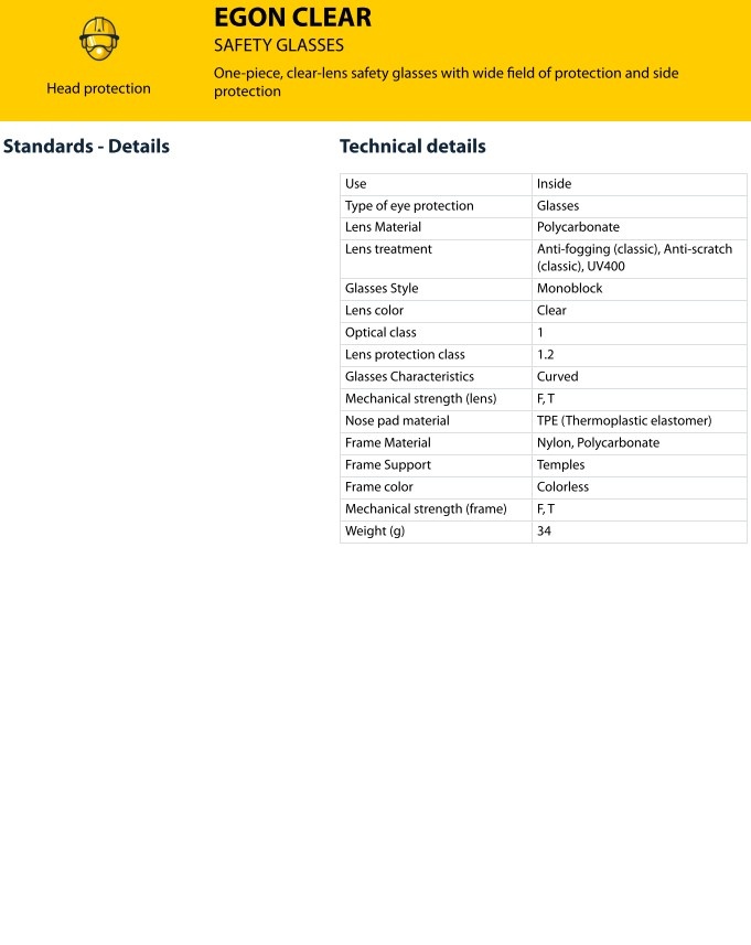 | Lens treatment Anti-fogging (classic), Anti-scratch | |