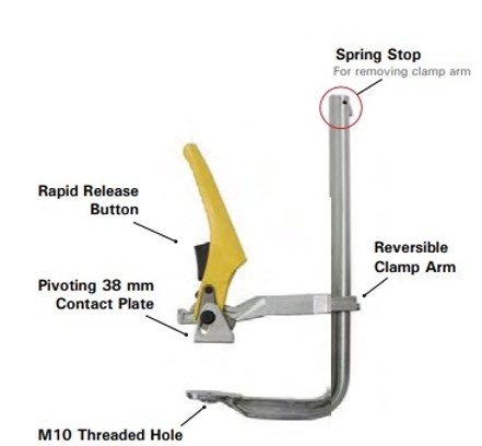 The Strong Hand ratchet clamp is designed for quick one handed clamping applications. Simply slide the clamping arm onto the workpiece and use the trigger ratchet mechanism to tighten. Once fastened these ratchet clamps provide strong clamping force whilst being resistant to vibration and torsion. A rapid release button allows the user to easily remove the clamp