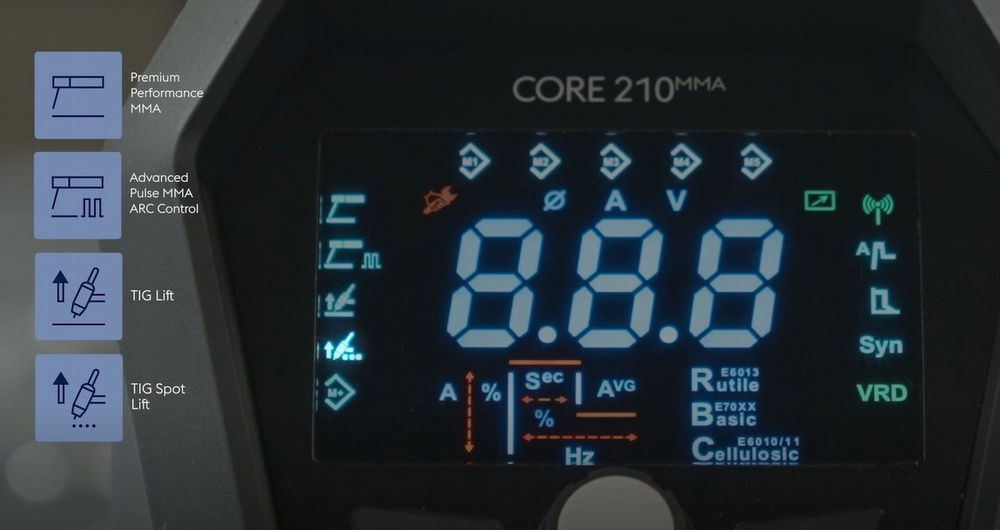 CORE 210MMA is a single-phase power source for MMA welding, MMA pulsed welding, LIFT-TIG DC (L-GTAW) welding and LIFT-TIG DC spot welding. Due to its high-grade, hybrid, composite and galvanized steel construction, CORE power sources are portable, durable, and resilient. Advanced, customisable, easy-to-read controls make setting parameters intuitive, while smart monitoring features keep welders informed.