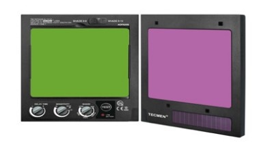 The Tecmen Hard Metal (TM16 Shell ADF820S filter) auto darkening helmet is a high end unit with the highest optical class 1/1/1/1. A large viewing are of 95 x 85mm with four arc sensors. Variable dark state shades of 5-8 & 9-13 and only weighing 490g.